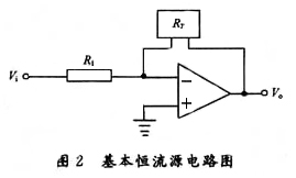 基本的恒流源电路见图2,用铂电阻RT代替反相放大器的Rf,根据反相放大器的公式可以得到: