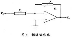 同相输入端调整电压的加入使得即使温度升高,输出电压也会减小,因此为了保证信号在-30℃~+70℃时线性输出-300~700 mV,在调零后再用一个放大电路对放大系数进行调节。如图4所示。