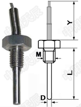 说明:PT100,测温范围-50~200℃,精度A级,插入深度30mm,保护管直径4mm,螺纹规格是M10×1,引线长1m,三线制 |